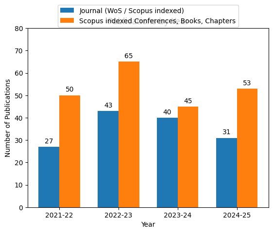 | Academic Year | SCI / SCIE / Scopus Q1 / Q2 / Q3 / Q4 / WoS / ESCI | Conference / Book Chapters / Book Indexed in Scopus / WoS |